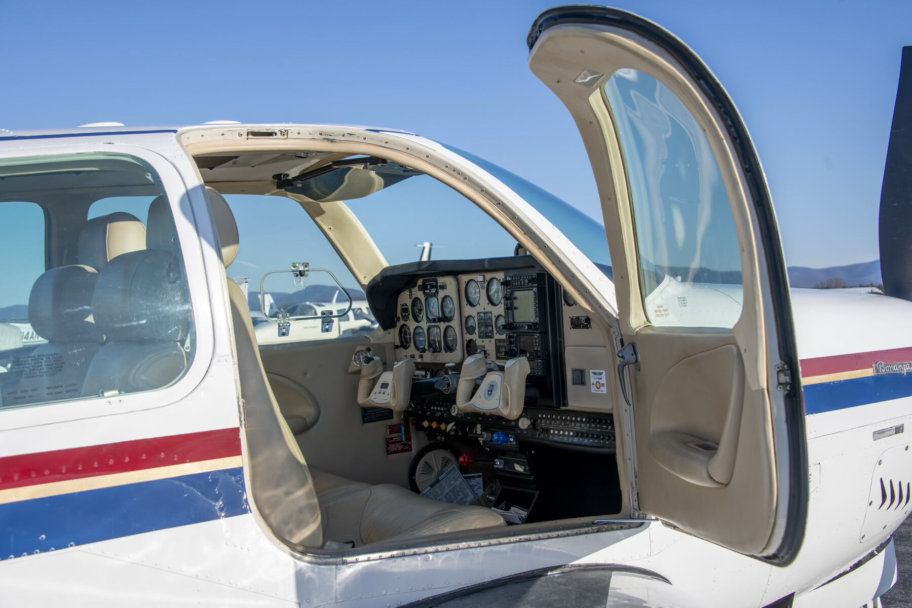 Exceptionally maintained, always hangared, and upgraded with modern Garmin avionics including WAAS/LPV capability, Aspen ProMax PFD/MFD, GNS 530W/430 stack, ADS-B Out, JPI engine monitor, and a Century III autopilot with altitude hold. This Bonanza is the perfect blend of classic Beechcraft quality and modern IFR capability.
