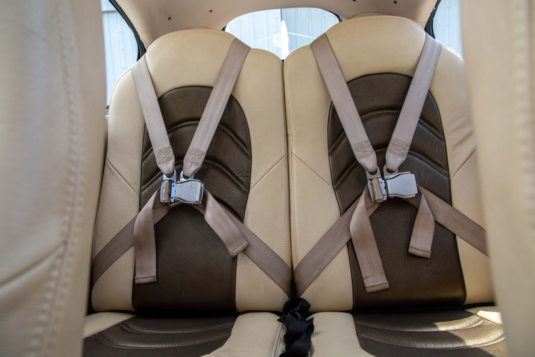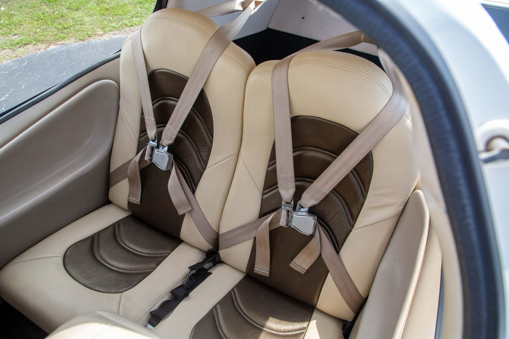 - Beige Leather with Brown Trim