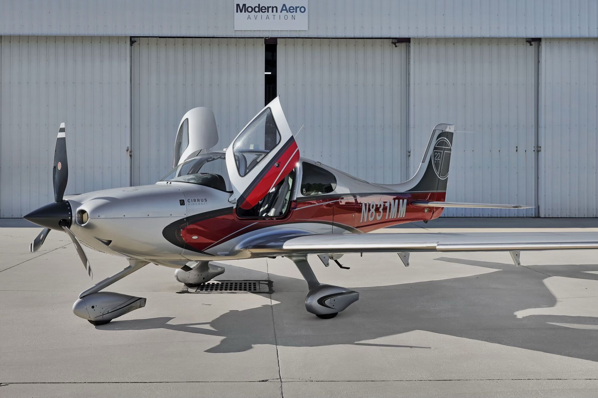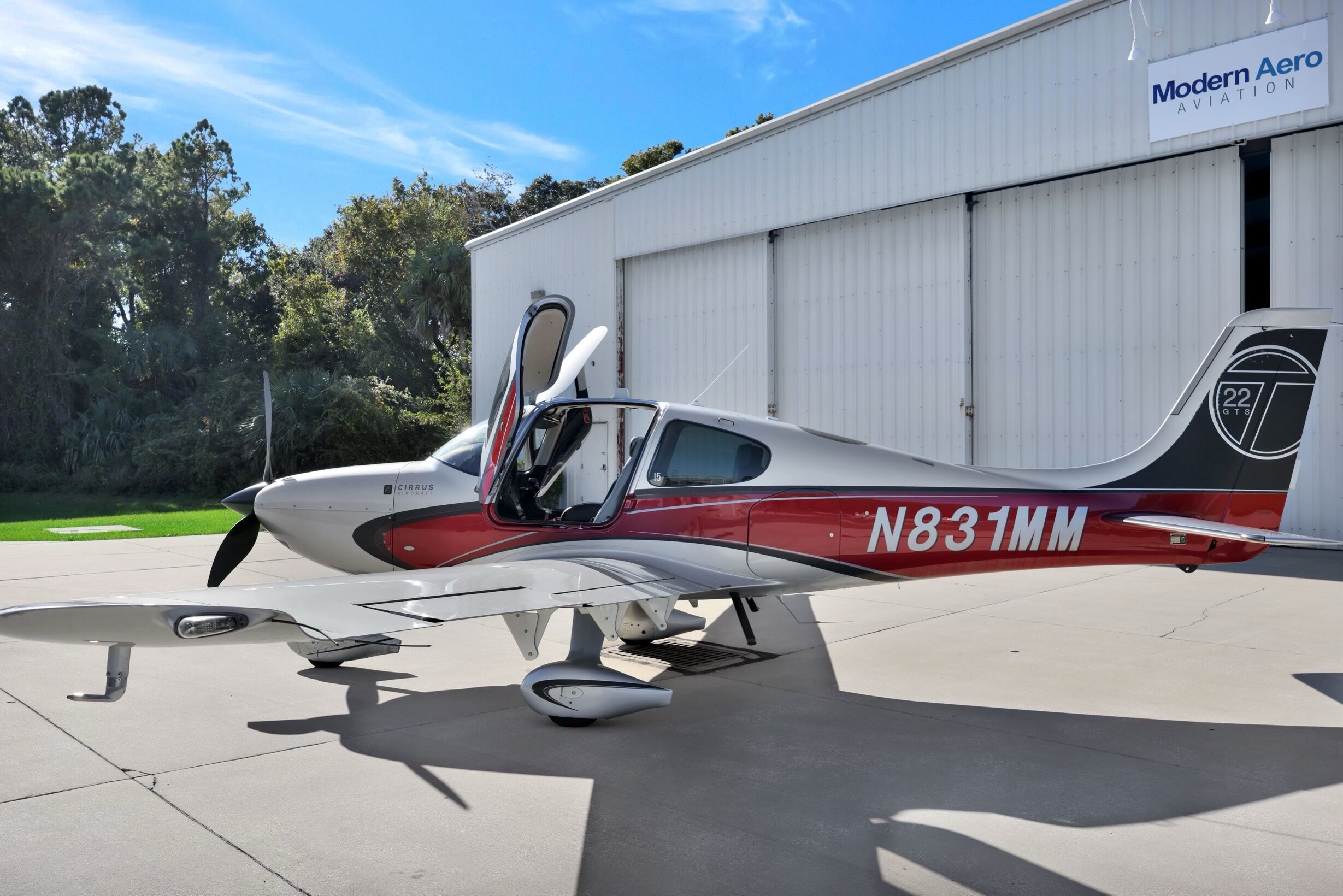 Aerista is proud to present N831MM, a 2013 Generation 5 Cirrus SR22T GTS, featuring a sleek two-tone exterior. This fully-loaded aircraft includes AC, FIKI, Active Traffic, ESP protection, and 5-place Flex Seating.